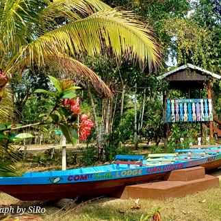 Der heute Tag war super heiss vom tropischen Klima her. Wir wurden um 8.30 Uhr von zwei Personen der Reiseagentur abgeholt und fuhren mit zwei anderen Pärchen von Deutschland in den Amazonas. Wir fuhren mit Bus, Schiff, Auto und zum Schluss nochmals mit einem Kanalboot zuerst im “Rio de Negro” welcher im Amazonas mündete und in schmale verschlungene Jungelkanäle und in Mangrovenwälder endeten. Vom Wasser aus konnten wir ab und zu Menschen in ihren Flussbungalows sehen oder in den Booten am Angeln. Als wir in unserer Unterkunft „The Turtle Lodge“ ankamen, wurden wir direkt am Emfang von unseren Gastgeber mit Fruchtsaft begrüsst. Nachdem unser Guide die wichtigsten Dinge über unseren Aufenthalt im Amazonas erklärte, bezogen wir unser Bungalow und gingen ins Restaurant Mittagessen. Wir sassen am Tisch bei dem deutschen älteren Pärchen und lernten sie etwas genauer kennen - sie waren uns sehr sympathisch und wir hatten viele spannenden Gespräche. Die Lodge war super hübsch eingerichtet und es gab nebst den Wohnbungalows und dem Restaurant eine Bar. Direkt am Wasser lag eine “Lobbyveranda” und es gab sogar ein kleiner Verkaufsstand.