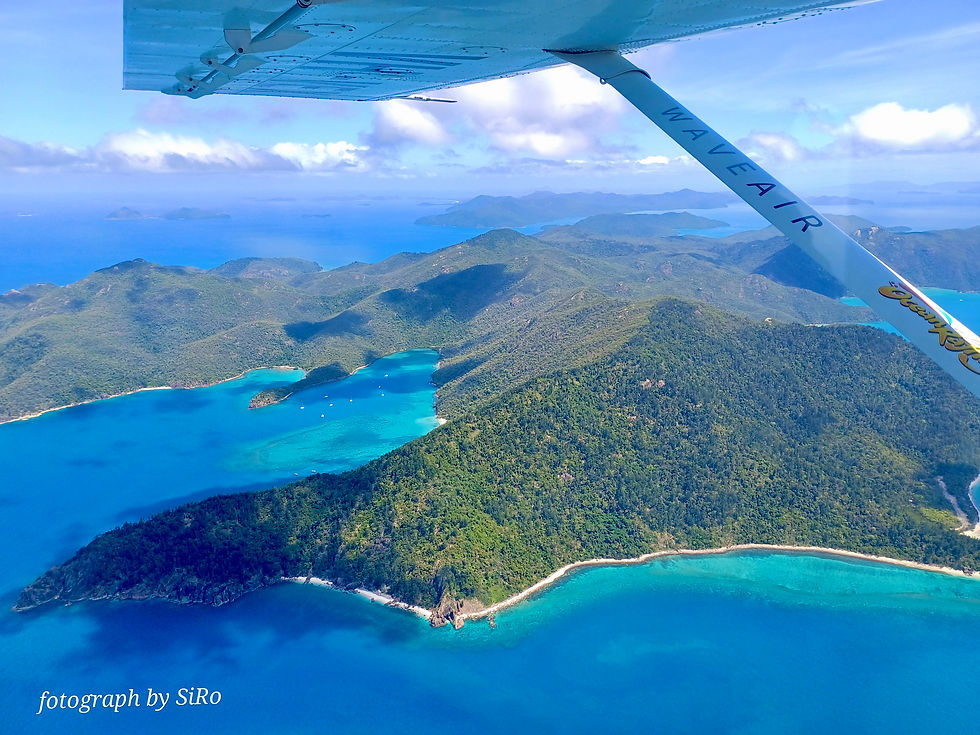 Wir trafen uns zuerst im Hotel “NRMA Holidaypark” bevor es mit einer größeren Gruppe mit einem kleinen Bus zum Hangar “Whitesunday Airport” ging. Dort teilten wir uns in kleinere Gruppen auf und unsere beiden Pilote erklärten uns sechs Passagieren zuerst die Notfallinstruktionen. Dann stiegen wir ein, setzten die Pamire, also Ohrenschützer auf und flogen los. Zuerst ging es über die hügeligen Waldgebiete und danach über die sumpfigen Flussgebiete Australiens. Mit Begeisterung schauten wir in die Weite und sahen die tollen Küsten mit den sandigen Stränden, ganz speziell die “Whitsunday Islands” und “Witheaven Beach” zwei Strände die berühmt für die weißen Strände sind. Nach diesen fantastischen Stränden flogen wir über den blau-türkisen Ozean und über das beeindruckende und faszinierende “Great Barrier Reef”, welches bekannt ist für die Korallen und die Artenvielfalt in den Gewässern. Eine kleine Insel fiel uns besonders auf, da sie die Form eines Herzes hatte. Nach dem einstündigen und fantastischen Flug, kehrten wir zurück zum Flugplatz.